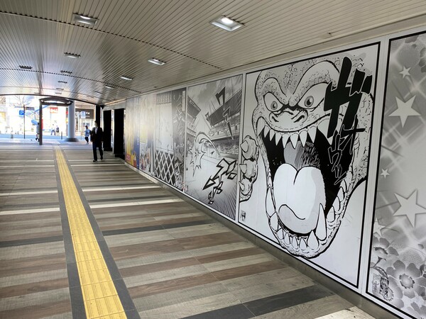小倉駅の東側にある公共連絡通路はコルトが「漫画トンネル」としてプロデュースしており、マンガの世界に入り込んだような写真を撮影できるフォトスポットとなっている