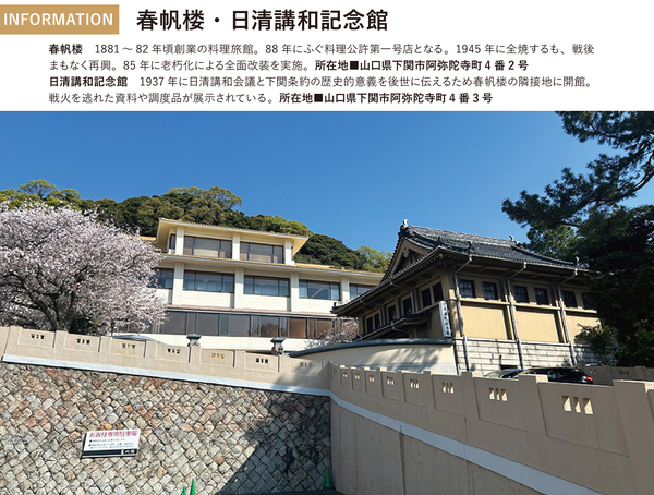 日清講和記念館は鉄筋コンクリート造りであったため、奇跡的に戦火を逃れた。館内中央には会議場が完全再現されており、歴史的な成果を残した交渉の場を肌で感じられる。館内には伊藤と李の遺墨なども展示されている