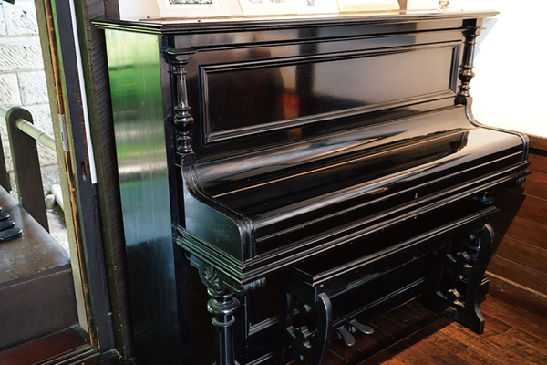 アトリエ(展示室)には、夫婦の作品のほか、息子が弾いていたピアノや当時の写真なども飾られている