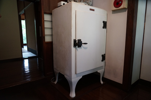 台所には芝浦電機製作所(現 東芝)が昭和5年に開発した日本初の家庭用冷蔵庫もおかれていた。大卒会社員の一年分の給料以上に高価な品だったという
