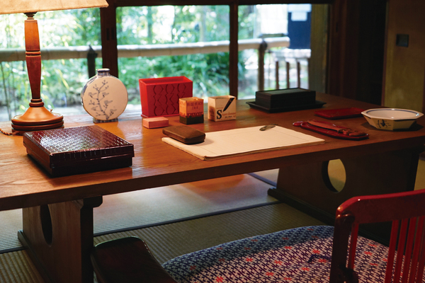 芙美子は納戸として造られた部屋をしだいに書斎として使うようになった。収納に囲まれ、こぢんまりした空間が執筆に集中するには適していたのだろう。机は小庭が見える位置に置かれているため、適度な開放感もある