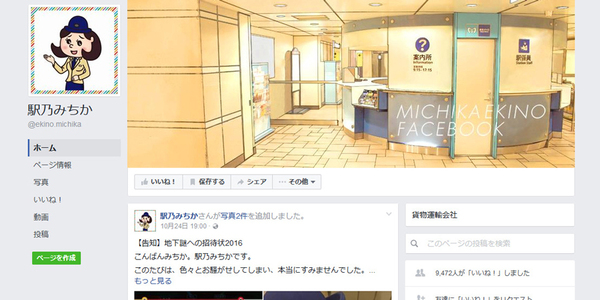 • 駅乃みちかのFacebookページ。騒動についても触れている。