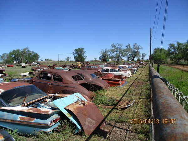 テキサス州のジェリコ付近の《自動車の墓場》。1950〜1960年代は大型乗用セダンが大半であったことが理解できる。日本車やドイツ車との競争がなかったアメ車の全盛時代。 5452:テキサス州アマリロ付近にあるルート66の名所≪キャデラック牧場≫