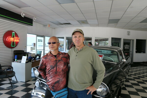 Nさんと元トヨタマンのオーナー。このKingmanの町は人口2万人の田舎町だが何故かクラッシックカーのディーラーが5〜6軒もある