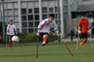 2013/07/30 大元よしきクラッチと呼ばれる松葉づえを使ってプレーするアンプティサッカー。これを日本で広めたのはアンプティサッカーの元ブラジル代表選手だった。