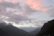 2017/12/17 高野凌7月24日。リカさんとは温泉寺院で朝風呂を浴びた後で二度も偶然に出会った。村外れでカフェをやっていると聞いたのでランチの後で散歩がてらに遊びに行った。カフェから渓谷一帯が眺望できる。