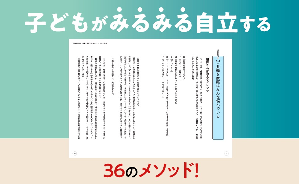 自立する→時間の使い方がうまくなる→自信が持てる→自分のことが好きになる……親も子もハッピーになるためのコツが詰まった1冊です。