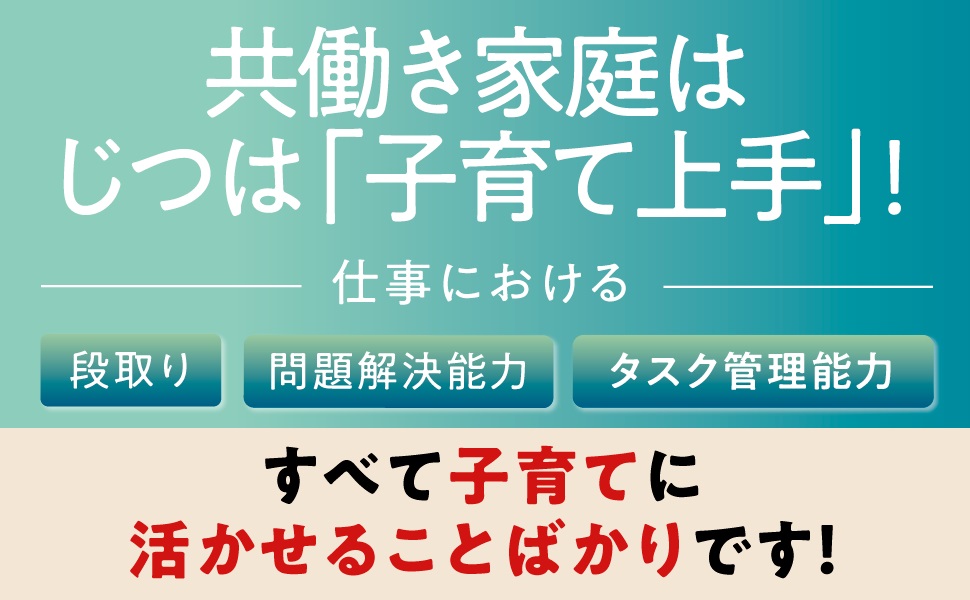 でも、考えてみれば仕事をしている人は、子育て上手とも言えるのです。なぜなら、仕事における段取りやコミュニケーション、問題解決能力等は、すべて子育てに必要なものばかり。とはいえ、主婦の方のタスク管理能力やダブルタスク管理能力もすごいもの。本書では、子育てをするすべての人がいまよりもっとラクになるコツをお伝えします。