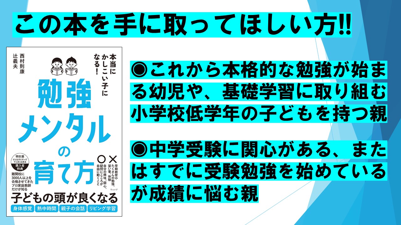 「頭がよくなる」とうたった書籍は数多く存在しますが、本書ではうわべのノウハウではなく、「頭がいい」とはどういうことなのか、その本質を考え、「勉強メンタル」という一生ものの力を育む方法を提案します。